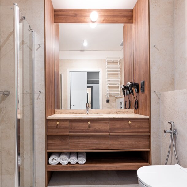 8 Stockwerke, 120 Zimmer mit hohem Standard, eine Aussichtsplattform, modern ausgestattete Zonen: Schwimmbäder, Hydrotherapie und SPA, Physiotherapie und Fitness sowie barrierefreie Medizin- und Behandlungsräume – all das erwartet Sie schon bald.