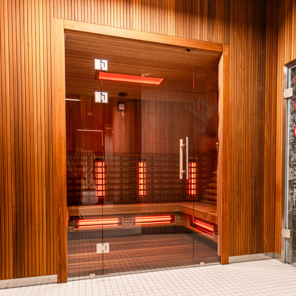 Poczuj intensywne ciepło, które oczyszcza ciało i umysł, pozostawiając Cię odprężonym i pełnym energii w saunie suchej o temperaturze 92°C